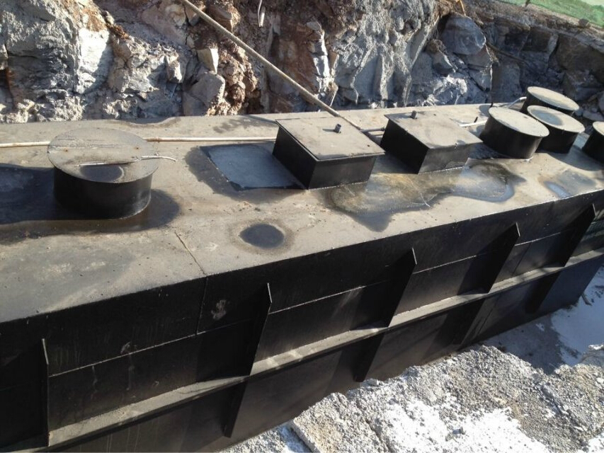 半地下式磚混結構,尺寸20 m×9.5 m×4.0 m,有效水深1.8 m,有效容積342 m3,水力停留時間54.72 h,用于收集厭氧出水,調節水質水量,同時進行水解酸化,降低好氧處理部分的負荷,內設2臺(1用1備)污水提升泵,型號為50WQ15-12-1.1。