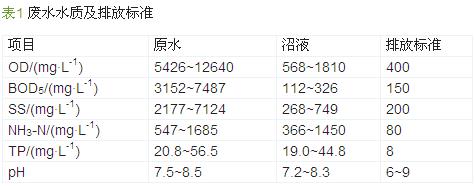 該養豬場主要來源于沖欄水、豬糞尿等,具體水質水量及相應排放標準見表 1。