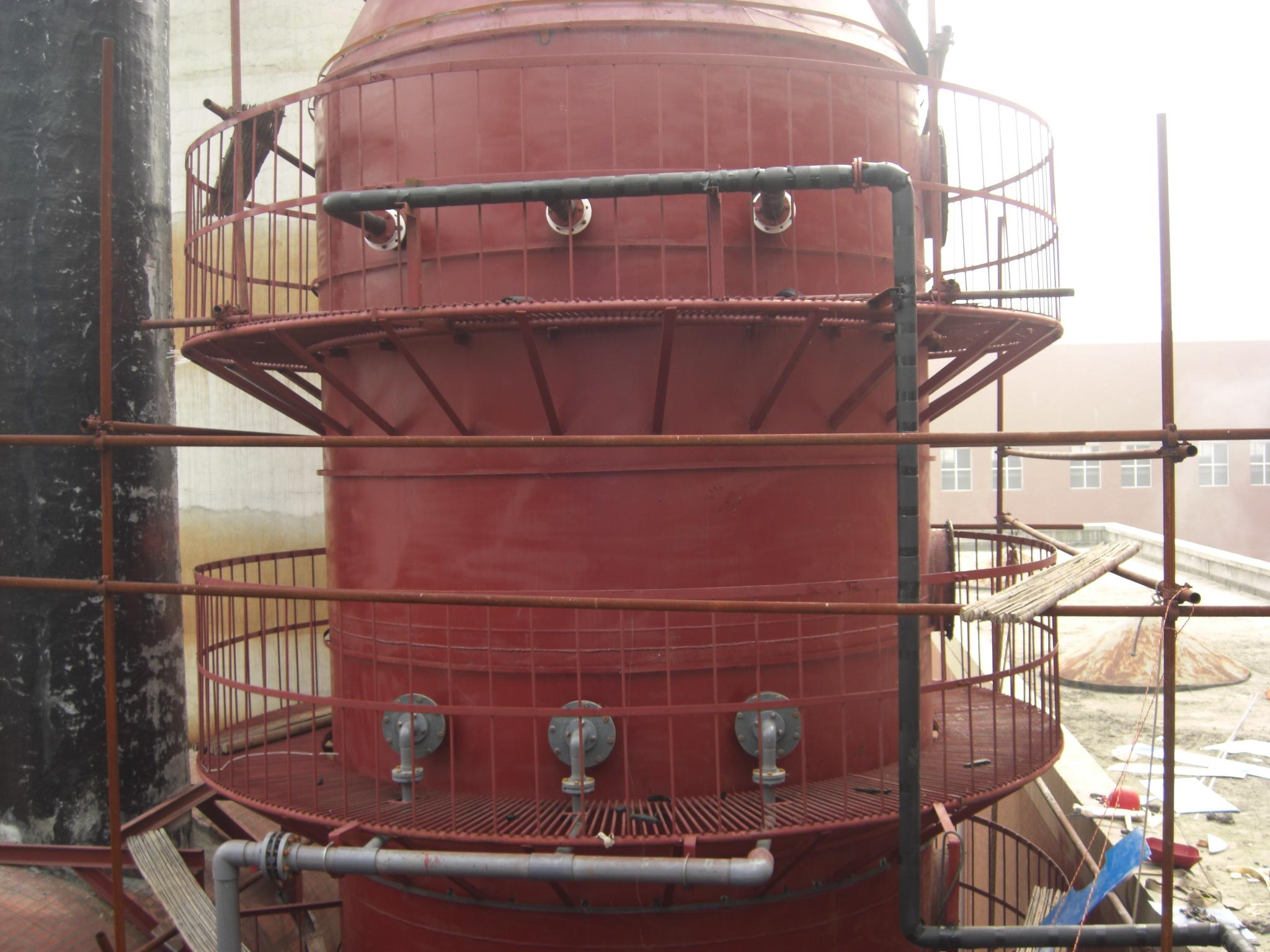 煙氣經電除塵器除塵后,在預洗滌器與噴人的再循環流酸銨漿液逆流接觸。由于循環漿液的蒸發使煙氣至飽和狀態.飽和煙氣通過消霧器進入吸收塔與逆向旋轉的不飽和硫酸銨溶液接觸。氧化空氣中加氨控制再循環液體的PH值以達到脫除SO2的需要。凈化后煙氣通過2級**除霧器后排放。預洗滌器的作用是SO2吸收和氧化過程與生成的結晶分開。煙氣的熱能將洗滌器中漿液的水分蒸發.導致硫酸銨結晶和洗滌器中液位降低。吸收塔內末飽和的硫酸銨溶液用于清洗預洗滌器的消霧器并控制預洗滌器的液位高度。