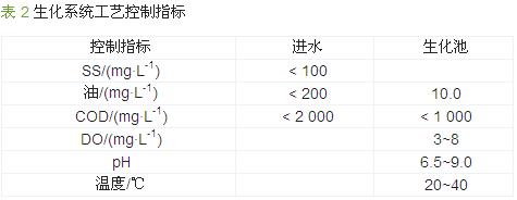 生化池設計:生化池材質選用PP板。PP板具有密度小、易焊接和加工,優越的耐化性、耐熱性及耐沖擊性,無毒、無味,是目前**符合環保要求的工程塑料之一。其廣泛應用于耐酸堿設備、環保設備、廢水、廢氣排放設備的制作〔5, 6〕。生化系統工藝控制指標見表 2。