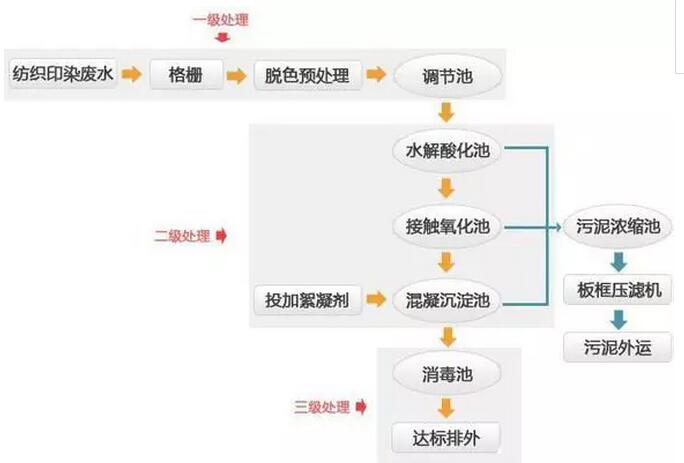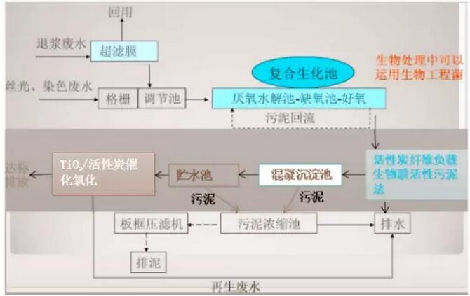 目前紡織染整廢水治理多選用預處理后,以生物處理技術為主,物理化學處理技術為輔的綜合處理技術。